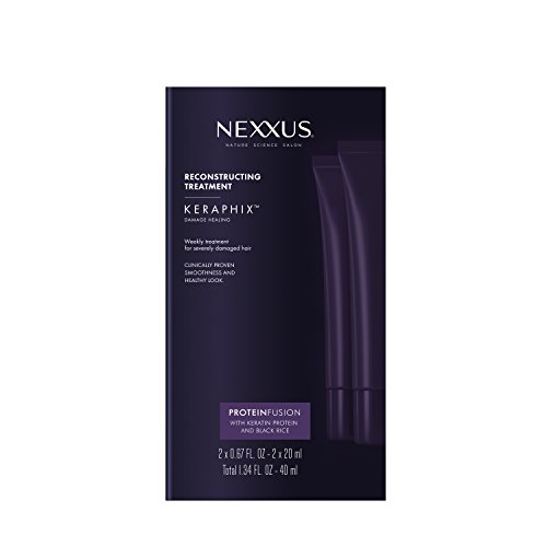 -. Binding : Health and Beauty -. Brand : Nexxus -. EAN : 0605592005459 -. Feature : Step 3: A powerful protein infusion treatment brings the salon experience home and revives severely damaged hair / Infused with an exclusive PROTEINFUSION blend with Keratin Protein and Black Rice / Salon quality treatment formulated to replenish the amino acids and proteins that are lost from severely damaged hair / Features our highest level of proteins containing Keratin, Collagen, and Elastin - combined with Black Rice extract / Clinically proven internal damage repair -. IsAdultProduct : 0 -. Label : Unilever / Best Foods -. Manufacturer : Unilever / Best Foods -. MPN : 605592005459 -. NumberOfItems : 1 -. PackageQuantity : 1 -. PartNumber : 605592005459 -. ProductGroup : Beauty -. ProductTypeName : BEAUTY -. Publisher : Unilever / Best Foods -. ReleaseDate : 2018-01-07 -. Studio : Unilever / Best Foods -. Title : Nexxus Keraphix Gel Treatment, for Damaged Hair 0.67 oz, 2 ct -. UPC : 605592005459