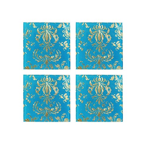 American Atelier Fleur De Lis/Gold Glass Coasters (Set of 4), Teal