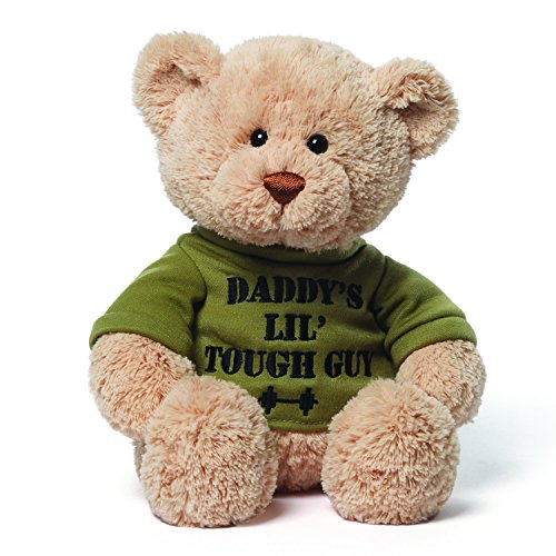 -. Feature : Beige plush teddy bear featuring removable khaki t-shirt with Daddy's Little Tough Guy message / Soft, hable plush built to famous GUND quality standards / Surface-washable / Great for ages 1+ / 12 inch height (30.5 cm)