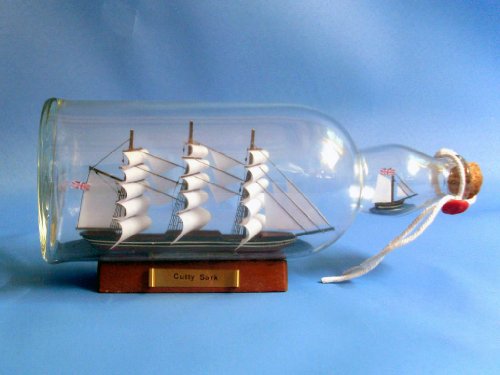 Studio : Handcrafted Model Ships Publisher : Handcrafted Model Ships Binding : Toy Product Description FULLY ASSEMBLED - READY FOR IMMEDIATE DISPLAYThis is not a Ship-in-a-Bottle kit?The ship in a bottle is one of the classic items of nautical decor, as much fun and mystery as it is remarkable craftsmanship.?Now you can enjoy an adorable ship in a bottle for yourself or give one as a gift to friends, family, clients or co-workers.?11" Long x 4" Wide x 5" High? Arrives fully assembled with all sails mounted --- This is not a ship in a bottle kit! Real glass bottle with a classic style Handcrafted wooden hull and masts Cork stopper and melted wax with an anchor impression seal the bottle Metal nameplate on wooden base identifies the ship as the Cutty Sark 0
