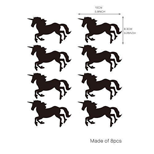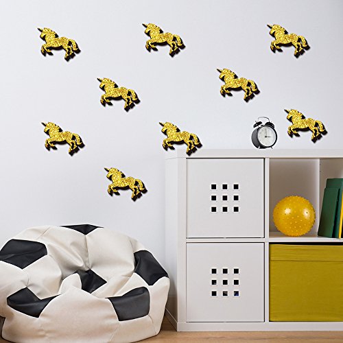 DecalMile 8-Pcs Gold 3D Unicorn Square Wall Stickers Fashion Design Art Decals Home Decoration Gold Glitter