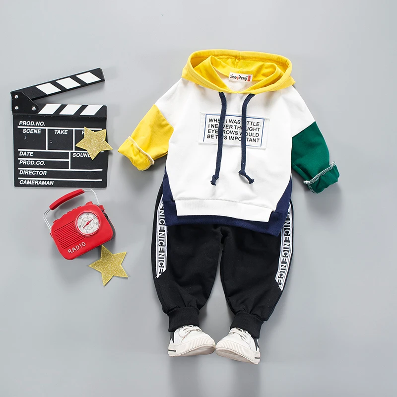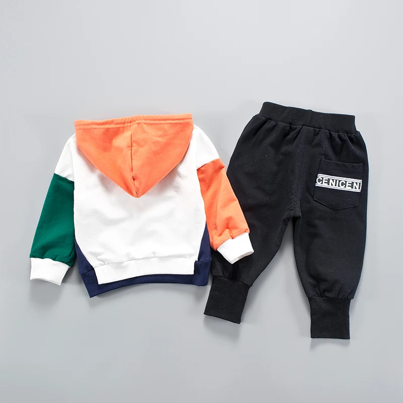 子供ファッションパッチワーク服スーツ2018赤ちゃん男の子女の子パーカーパンツ2ピース/セット子供スポーツフード付き服ジャージ