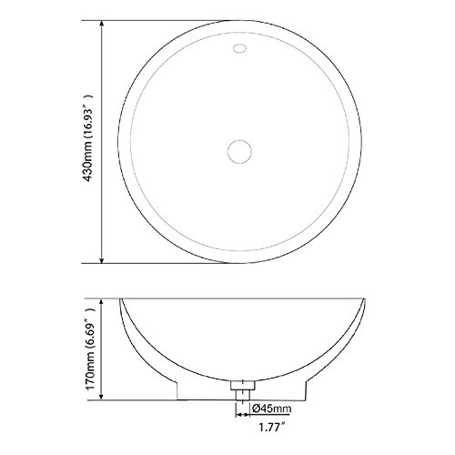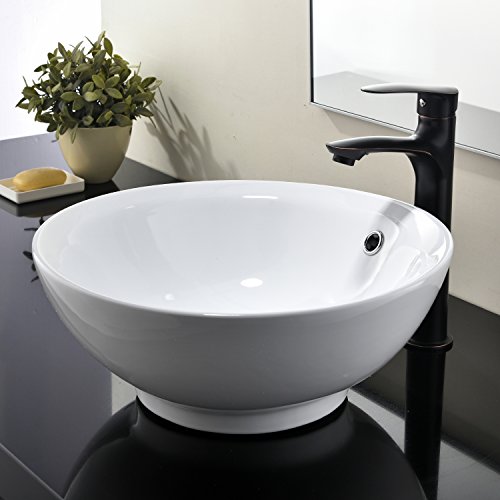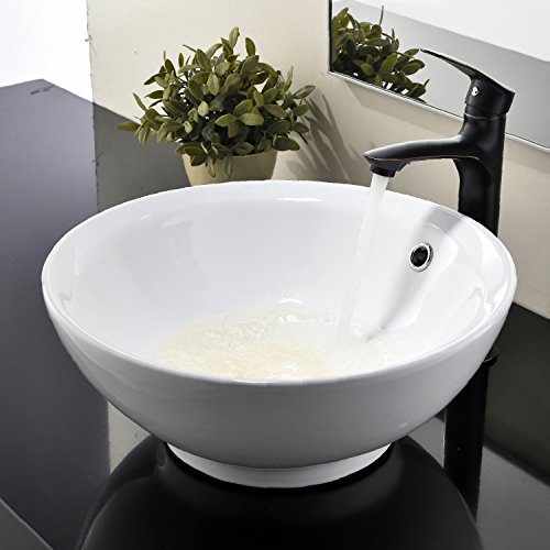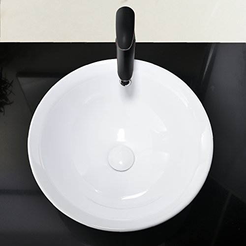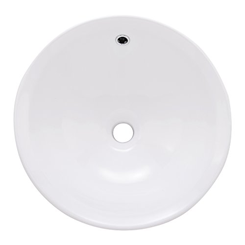 Ufaucet Above Counter White Round Porcelain Ceramic Bathroom Vessel Sink, Bathroom Sink Without Pop Up Drain