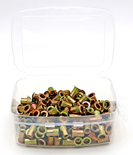 iExcell 100-Pack #10-24UNC Yellow Zinc Plated Carbon Steel Rivet Nut Flat Head Insert Nutsert