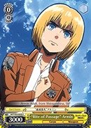 -. Binding : Toy -. Brand : Weiss Schwarz -. Edition : Attack on Titan Booster Pack -. Feature : A single individual card from the Weiss Schwarz trading and collectible card game (TCG/CCG). / This is of C rarity. / From the Attack on Titan Booster Pack set. -. IsAdultProduct : 0 -. ItemPartNumber : AOT/S35-E020 -. Label : Bushiroad Inc. -. Manufacturer : Bushiroad Inc. -. ProductGroup : Toy -. ProductTypeName : TOYS_AND_GAMES -. Publisher : Bushiroad Inc. -. Studio : Bushiroad Inc. -. Title : Weiss Schwarz - "Rite of Passage" Armin - AOT/S35-E020 - C (AOT/S35-E020) - Attack on Titan Booster Pack
