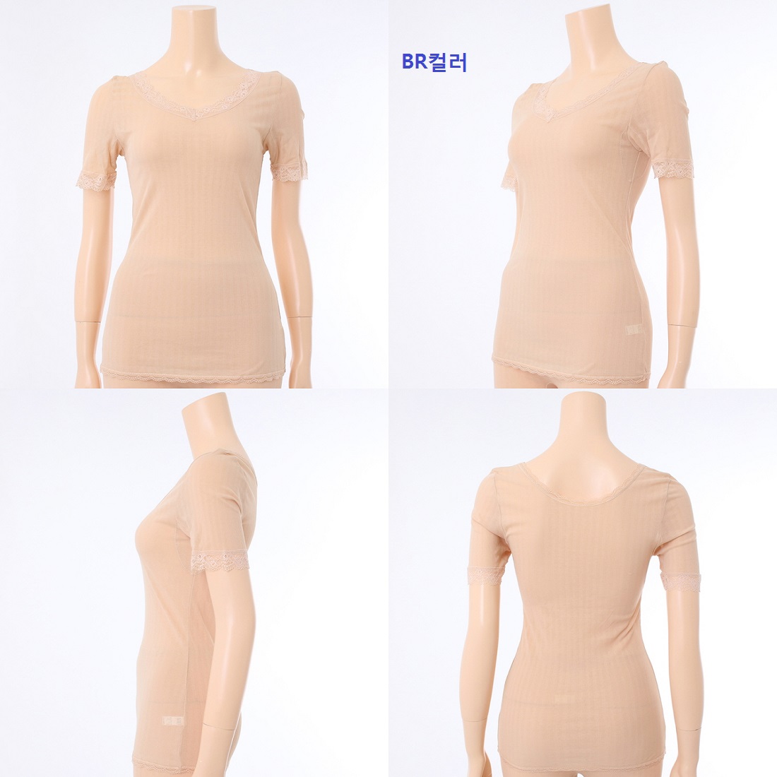 앞목둘레 라인은 고급스럽고 부담스럽지 않은 소폭의 레이스로 처리하여