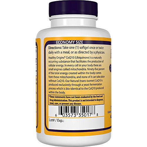 ReleaseDate : 2015-06-22 Studio : Healthy Origins Publisher : Healthy Origins Binding : Health and Beauty Product Description Healthy Origins CoQ10 (Ubiquinone) is a naturally occurring substance that facilitates the production of cellular energy. In every cell in your body there are small engines called mitochondria. Ninety-five percent of the total energy created within the body comes from these mitochondria, and none of it can take place without CoQ10. Our Natural (trans-isomer) CoQ10 is produced exclusively through a yeast fermentation process which is bio-identical to the CoQ10 produced within the body. 0