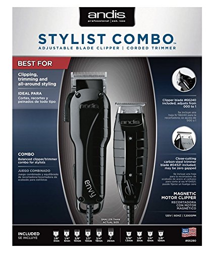 Andis Barber Combo-Powerful High-speed adjustable clipper blade & T-Outliner T-blade trimmer with fine teeth for dry shaving, outlining and fading With a...