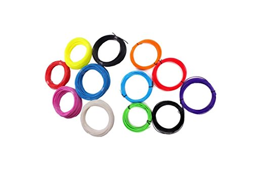 12 unique vibrant colors of 1.75mm ABS filament and each unique color is precisely cut at 20 Feet. These filaments are very pliable and easy to use