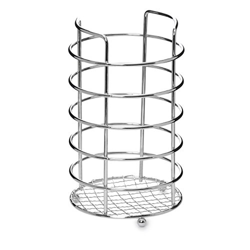 - HIGH QUALITY AND STYLISH UTENSIL HOLDER. Made of chrome finish. Heavy and solid, so it will not easily tip over