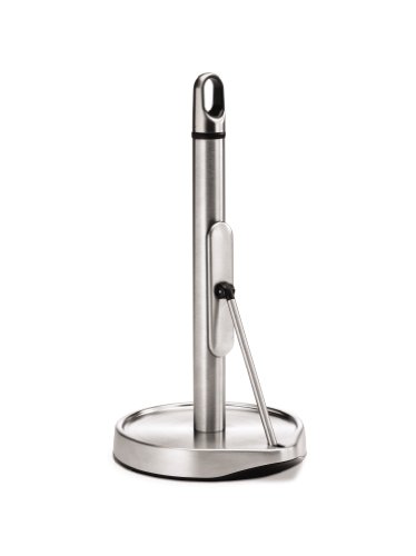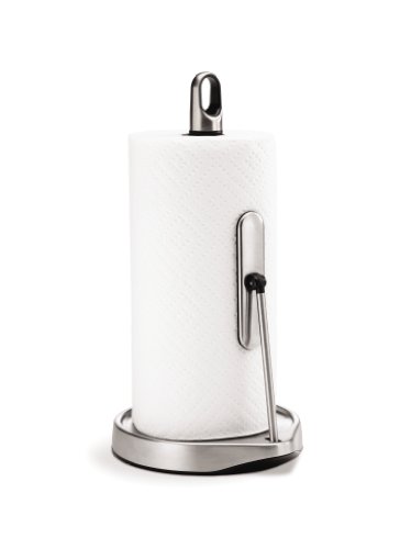 Whether it's a brand new roll or you're down to the last sheet, the simplehuman tension arm paper towel holder gently holds the roll in place so you can tear off one sheet at a time with just one hand. It is engineered with a durable stainless steel rod and a weighted stainless steel base to keep the holder steady.
