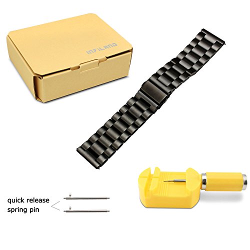 Gear S2 Classic Watch Band, Infiland Stainless Steel Metal Replacement Strap Wrist Band for Samsung Galaxy Gear S2 Classic SM-R732 & SM-R735 SmartWatch - Black