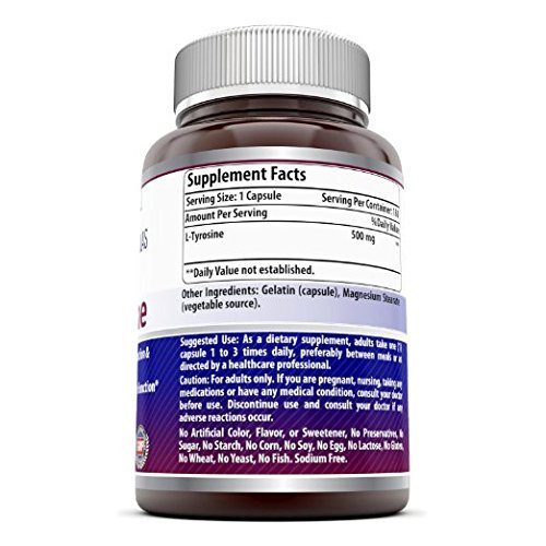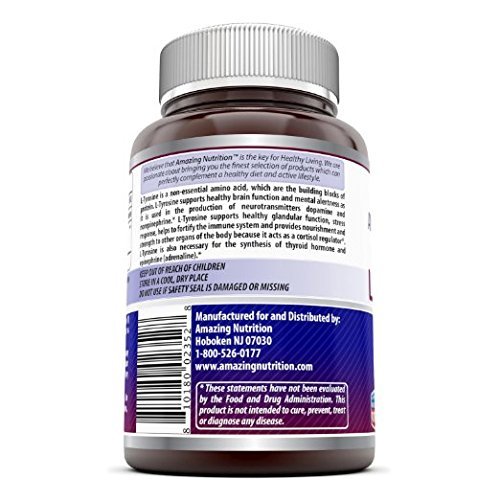 -. Binding : Health and Beauty -. Brand : Amazing Nutrition -. Feature : L-TYROSINE BENEFITS A Potent Dose Of L-Tyrosine Supports Healthy Brain Function &Mental Alertness, Healthy Glandular Function It May Also Help To Relieve Stress And Anxiety / THE SIMPLE SUPPLEMENT SOLUTION Just 1 to 3 of our l tyrosine 500mg capsules gives you all the l tyrosine you need! / FREE OF CHEMICAL ADDITIVES We never add artificial colors, flavors, sweeteners or preservatives to our l tyrosine supplement. Our supplement is free of unnecessary fillers and binders / MADE IN THE USA Amazing nutrition l tyrosine 500 milligram capsules are manufactured in the U.S. at a GMP certified facility, ensuring that our tyrosine capsules are of the absolute best quality / FITS PERFECTLY WITH YOUR HEALTHY LIFESTYLE Our Tyrosine 500 mg capsules are free of sugar, starch, corn, soy, egg, lactose, gluten, wheat, yeast, fish and sodium to fit most diet plans and perefrences -. Label : Amazing Formulas -. Manufacturer : Amazing Formulas -. ProductGroup : Health and Beauty -. ProductTypeName : HEALTH_PERSONAL_CARE -. Publisher : Amazing Formulas -. Studio : Amazing Formulas -. Title : Amazing Formulas L- Tyrosine 500 Mg 180 Capsules - Supports Mental Alertness, Energy, Focus, Healthy Glandular Function and Balance