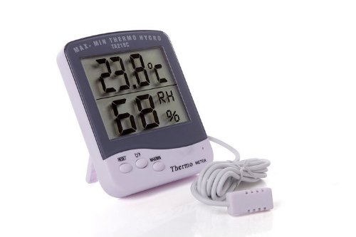 Shows current temperature and relative humidity With a large numeral LCD display.