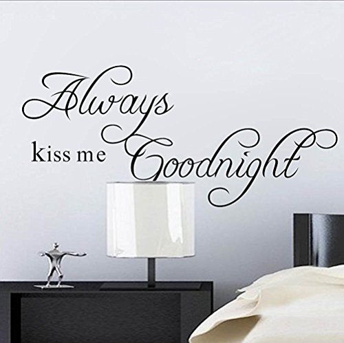 Amaonm® English Words Always Kiss Me Goodnight Removable Vinly Quotes Wall Art Decor Decals for Babys Kids Bedroom and a Free Piece Beautiful Butterfly Wall Stickers