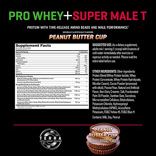 Unleash your inner alpha. Break through any obstacle and overcome all challenges. This protein blend with time-release amino beads supports amplified strength and recovery, powerful athletic performance and advanced testosterone support. PRO WHEY + SUPER MALE T takes our PRO WHEY+ protein and combines it with our SUPER MALE T testosterone boosting formula. This potent blend of ingredients will allow you to go beyond great performance and achieve sheer power. -Protein powder + BCAAs -Supports muscle recovery and growth -Supports healthy testosterone production Every PERFORMIXTM supplement is driven by our TERRA Intelligent DosingTM technology. We use bioavailability enhancers, maximizing every single molecule's potential. Our mission is to outperform, out last and out do. TERRA Coating is an innovative Multi-Coating Matrix (MCM) technology that targets extended release functionality. This offers an advanced delayed release coating system designed with multiple release points to help maximize ingredient performance.Feature