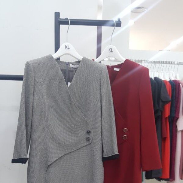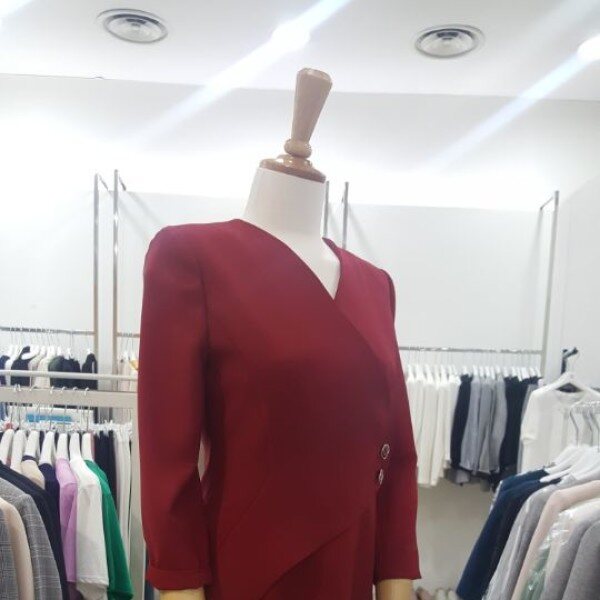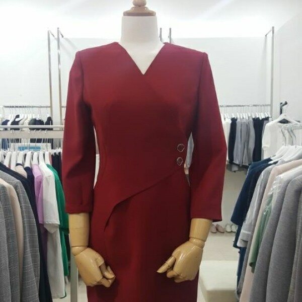 KL 패션아일랜드 브이넥 사선버튼 원피스 KWOPID1200원피스 브이네크 라인에서 차선으로 내려가며 오버랩 된 디자인으로 버튼 정식으로 마무리한 세련된 무드의 원피스. 전체적으로 깔끔한 디자인으로 슬림한 라인감 의 7부소매로 오피스룩이나 포멀하게 연출하기 좋다. * 컬러 : 블랙체크, 레드 *사이즈 : 55/66/77 *총기장(cm) : 92cm