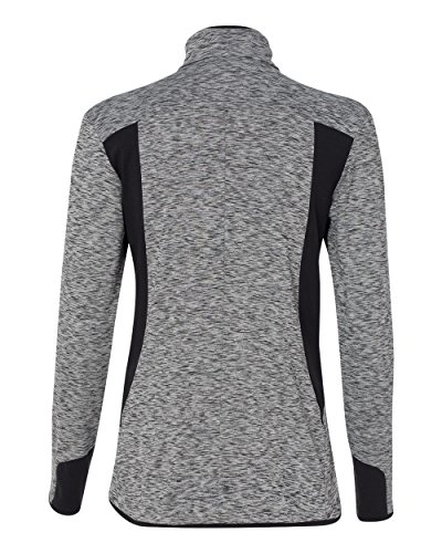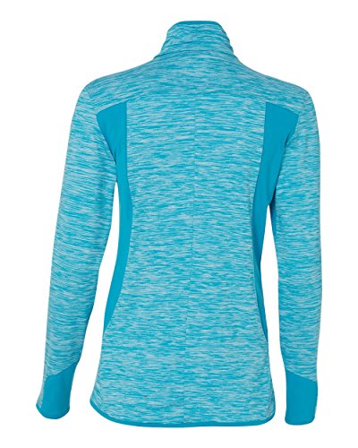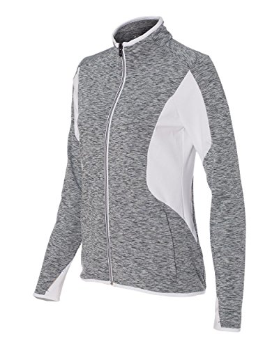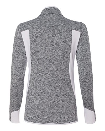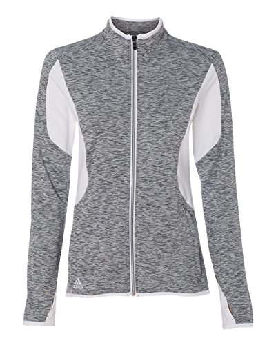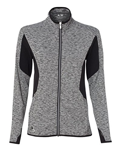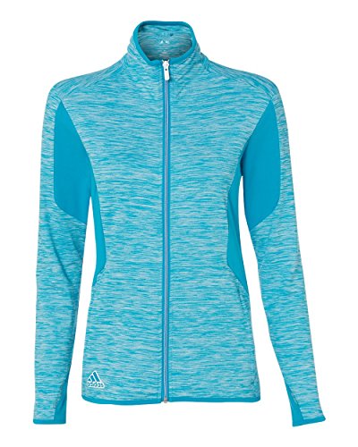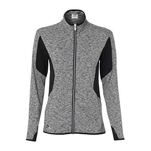 Binding : Apparel Product Description - 6.8 oz., 90/10 polyester/elastane - 87/13 polyester/elastane insert - "[CLICK HERE](http://bit.ly/PolyScreenTips)" for Polyester Printing Tips - 90/10 polyester/elastane space dyed jersey front and back panels with hydrophilic finish - Self-mock collar - Two front zip pockets - Thumbholes on cuffs - Vertical back seam for shaping - Adidas logo on right bodice 0
