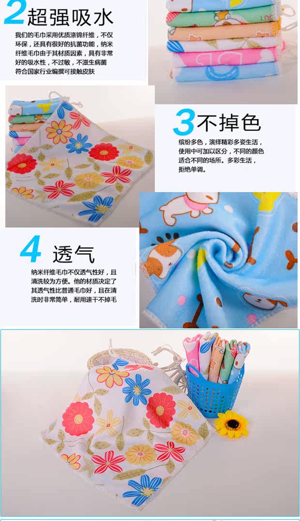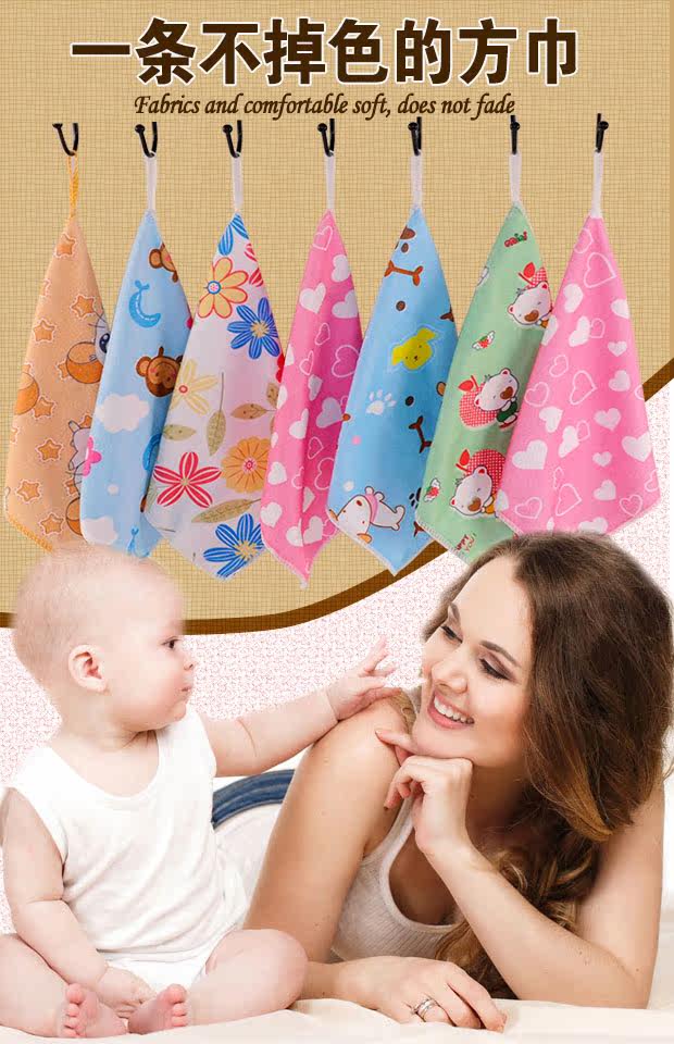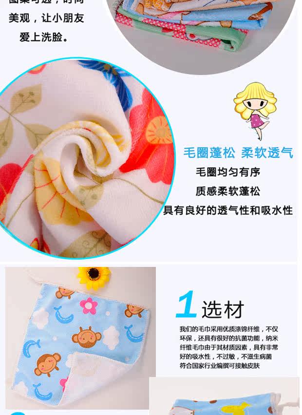 儿童方巾毛巾洗脸成人可挂式吸水小帕子幼儿园家用可爱卡通不掉色