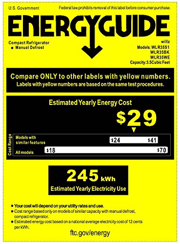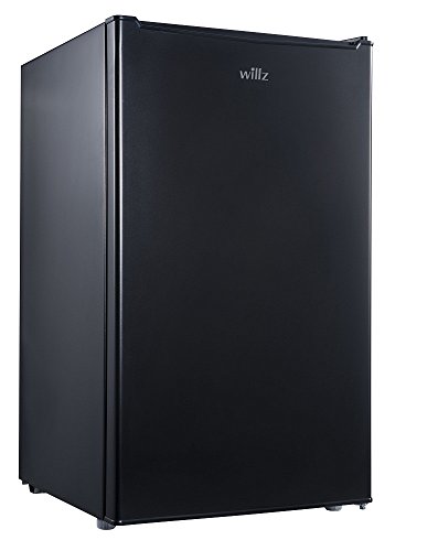 With the WILLZ 3.5 CU.FT. ONE DOOR COMPACT REFRIGERATOR in BLACK LOOK, you can enjoy the convenience of having your favorite chilled food or drinks whenever you like. This is an ideal size to keep in a game room, dorm room, exercise room, office, garage or any other living space. This WILLZ refrigerator features a full-width freezer compartment with a door that is ideal for ice and frozen food storage. And it has excellent organizational features such as interior light, one full and slide-out glass shelf, 2 leveling front legs, 2-liter bottle door storage, and can dispenser. The convenient reversible door allows the refrigerator to open from either the left or the right side for use exactly where you need it. The mechanical adjustable thermostat control enables quick and simple temperature adjustments. It consumes less power and is energy efficient. This UL and DOE certified refrigerator is quality built and made to last.Feature