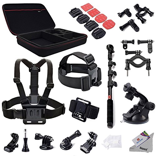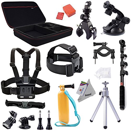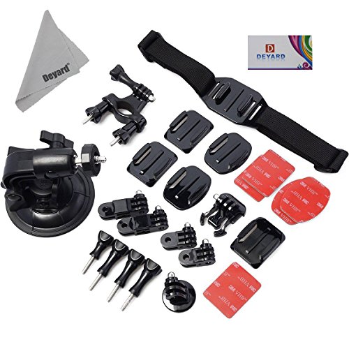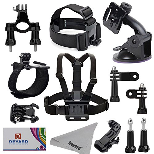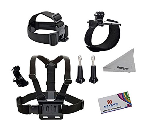 DEYARD ZG-635 GoPro Accessories Kit Set of 5 for GoPro HD Hero 1 2 3 &3+: Head Strap Mount + Chest Harness with J-Hook Mount + Wrist Mount + Handlebar Mount with Pivot Arm + Suction Cup Mount + 2pcs Thumbscrews + DEYARD Superfine Fiber Cloth -- Compatible with ALL GoPro Cameras, GoPro HERO3+ HERO3, HERO2, and HD HERO Original Cameras