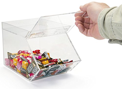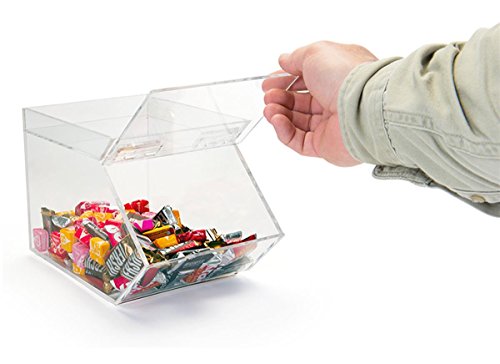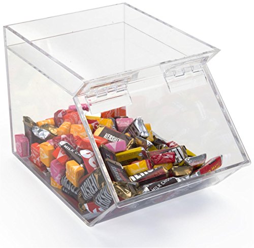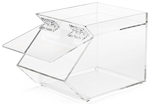 Displays2go Acrylic Stackable Candy Bin with Magnetic Hinged Door for Easy Serving, 1-Gallon, Clear