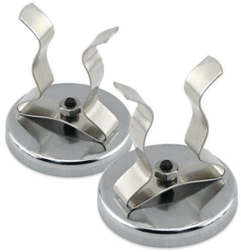 Master Magnetics RB50NPCX2 Magnetic Hook, Round Base Magnet Fastener with Steel Clip Chrome Plate, 2.04" Diameter, 2.210" Total Height, 35 Pounds, Silver (Pack of 2)