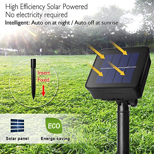 EFFICIENT ABSORPTION & CONVERTION --- Designed with the solar panel and rechargeable battery, the solar string lights can work for about 8 hours at night if the panel absorbs enough sunshine during day.