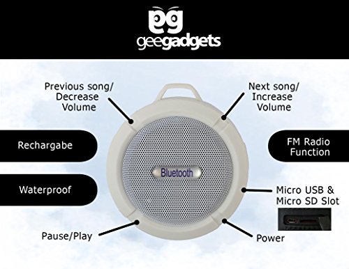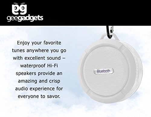 Wireless Bluetooth Shower Speaker - Portable Waterproof Music Player with Suction Cup Mount and Rechargeable Battery - Hands Free Speakerphone and Microphone - by GeeGadgets