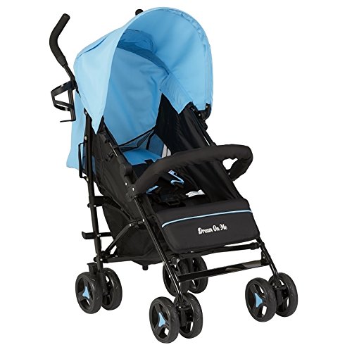 Dream On Me Jasper is a convenient lightweight stroller. Its swivel front wheels provides a smoother ride over curbs and uneven surfaces. The backrest can be adjusted to a sleeping position and the extendable full cover creates a shield environment for your child. The Jasper adjustment of the backrest positon is done with a one hand grip places at the center of the backrest enabling a smooth transition between different positions. The angle and slop between the padded handle and rear wheels make space for easy walking. Dream On Me Jasper offers a quick and simple compact fold design for travelling and storage also features an extended footrest, 5-point harness, accessible basket an easy braking system. This model has a new and improved lightweight frame which makes a total weight of 14. Lbs. All textiles are treated to help protect against dirt and makes the Jasper easy to keep clean.Feature