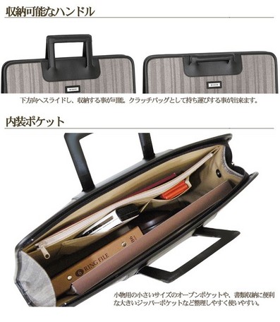 ・本体内装にオープンポケット×3、ジッパーポケット×1