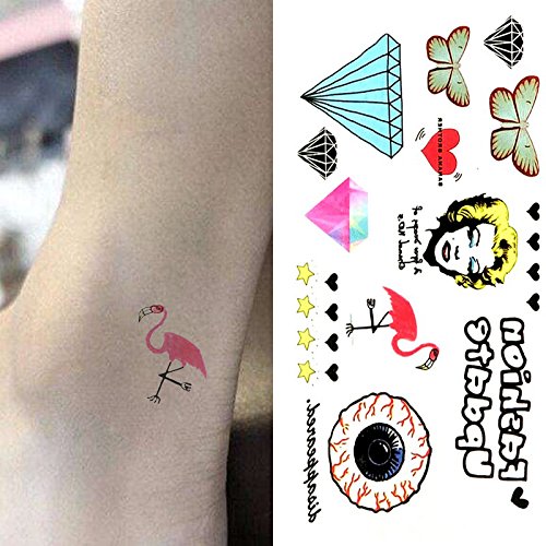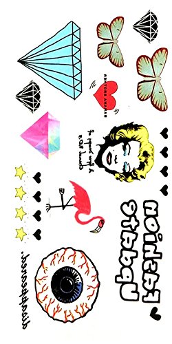 Oottati Small Cute Temporary Tattoo Diamond Butterfly Eye (2 Sheets)