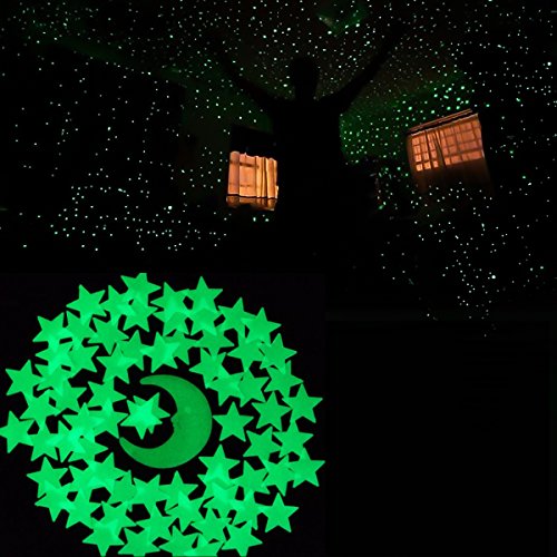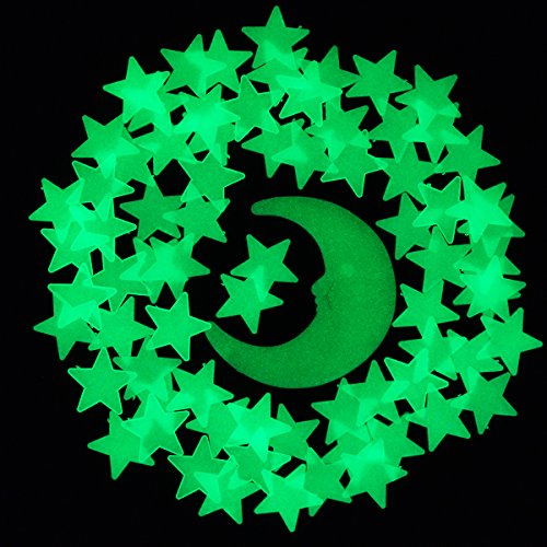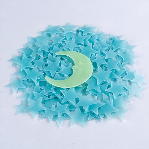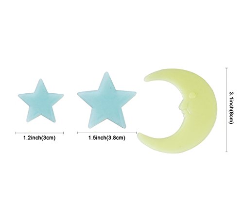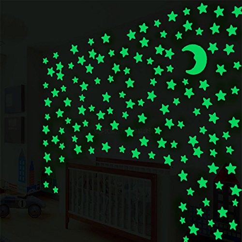 Glow In The Dark Stars 3D Wall Stickers,200 Stars and Moon for Kids Room Ceiling by Grace
