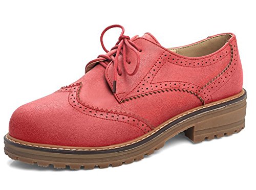 -. Feature : Designed by artificial leather with soft surface / Round toe; Lace up; Convenient and comfortable / Brogue detail and block heel design; Retro and chic style / Soft lining and slip resistant sole; Breathable and durable / Perfect for travel, work, outdoors, or other various occasions