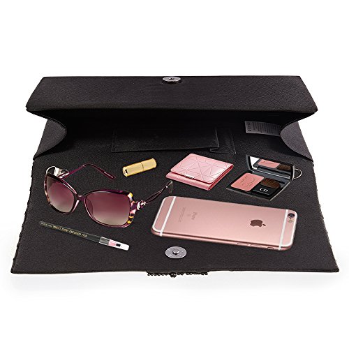 -. Feature : Gorgeous beaded design, 100% hand beaded / Measures length 10.5" x height 5.1" x Depth 2.1" inches / Handle chain 14.0",and long shoulder chain 47" attached / Large capacity, can easily fit iphone 7 plus, wallet, compact mirror, lip gloss, and a pack of gum. / Style: evening bag; wedding purse; bridal prom handbag; party clutch