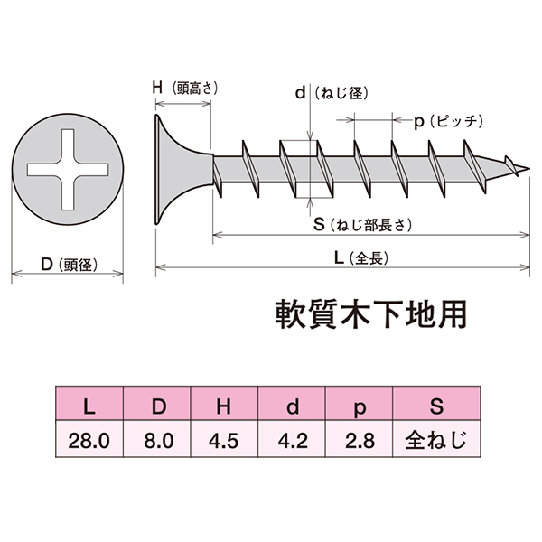 ●スペック:ラッパ (全ネジ) 4.2×28mm