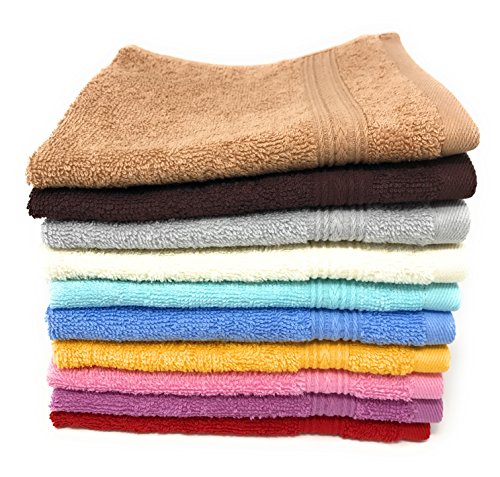 Luxury Cotton WashCloths, (12-Pack, 13 x 13 inches) - Easy Care, Fingertip Towels, Facial Towelettes, Cotton Hand Towels (Light Blue)