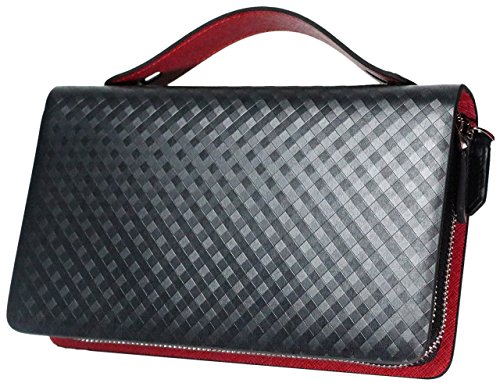 -. Title : 黒×赤 F 大人 紳士 本革 スペイン カーボンレザー 長財布 メンズ 男性 クラッチバック セカンドバッグ ダブルファスナー ラウンドファスナー 小銭入れ 長サイフ YKK ラウンドジップ 革 サイフ 牛革 ビジネス 0010006-F-005