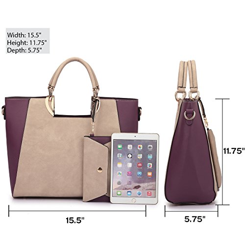 -. Feature : DESIGN - The Dasein Designer Satchel for Women is a Stylish and Fashionable tote shoulder bag - Crafted in vegan faux leather with smooth and supple texture and two tone detail - Metal feet at bottom for protection / WEAR - This beautiful purse go with just about any attire - Dual rolled top handles in unique design with gold accents are comfortable to carry by hands or arm - Use removable adjustable shoulder strap to wear on shoulder or cross-over and free your hands / BIG AND ROOMY - Approx.(top)15.5"W x 11.75"H x 5.75"D. Handle: 4"drop. Shoulder Strap: end to end 48" - Fit 12 inch Macbook(tested) - Top zip opens to a signature fabric lined interior with one compartment and 3 inside pockets, including 1 zip and 2 slip pockets for cell phone, sunglasses, cards, keys, lipstick, etc, to keep necessities handy / BONUS - Come with an envelope style small clutch bag with a detachable wristlet - Snap closure - Approx. 7.5"W x 4.5"H - Can be used as a coin purse or phone case - Fit iPhone 7 Plus / 100% MANUFACTURERS GUARANTEE AGAINST FAULTY WORKMANSHIP. Ship from Los Angeles or Amazon Warehouse. Find storefront of Dasein, more surP.R.Ises are waiting for you