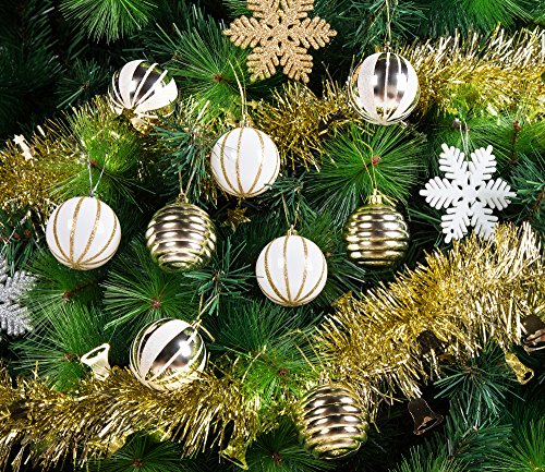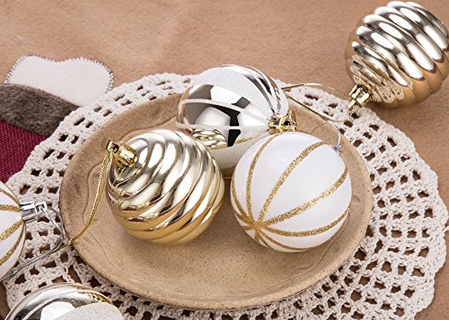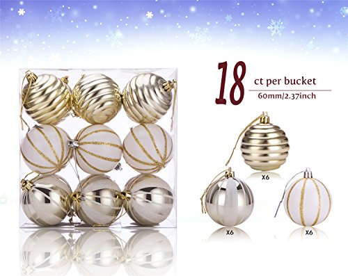 SANNO 18ct Christmas Balls Delicate Painting & Glittering Ornaments White/Silver/Gold Shatterproof for Holiday Wedding Party Decoration, 60mm/2.36"