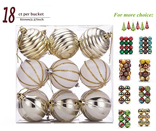 - Size: 2.36" (60mm) in diameter,18pcs/pack.Balls are equipped with Caps, String Hangers. They will fit perfect for any normal sized tree in the 5-8 foot range.