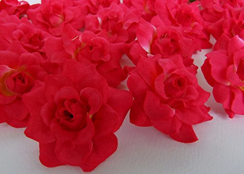 24 Silk Dark Pink Roses Flower Head - 1.75" - Artificial Flowers Heads Fabric Floral Supplies for Wedding Flowers Accessories DIY Make Bridal Hair Clips Headbands by You.