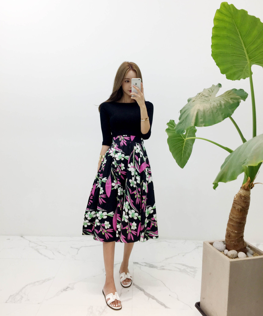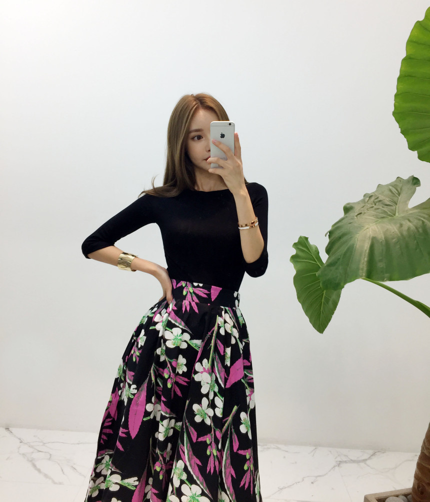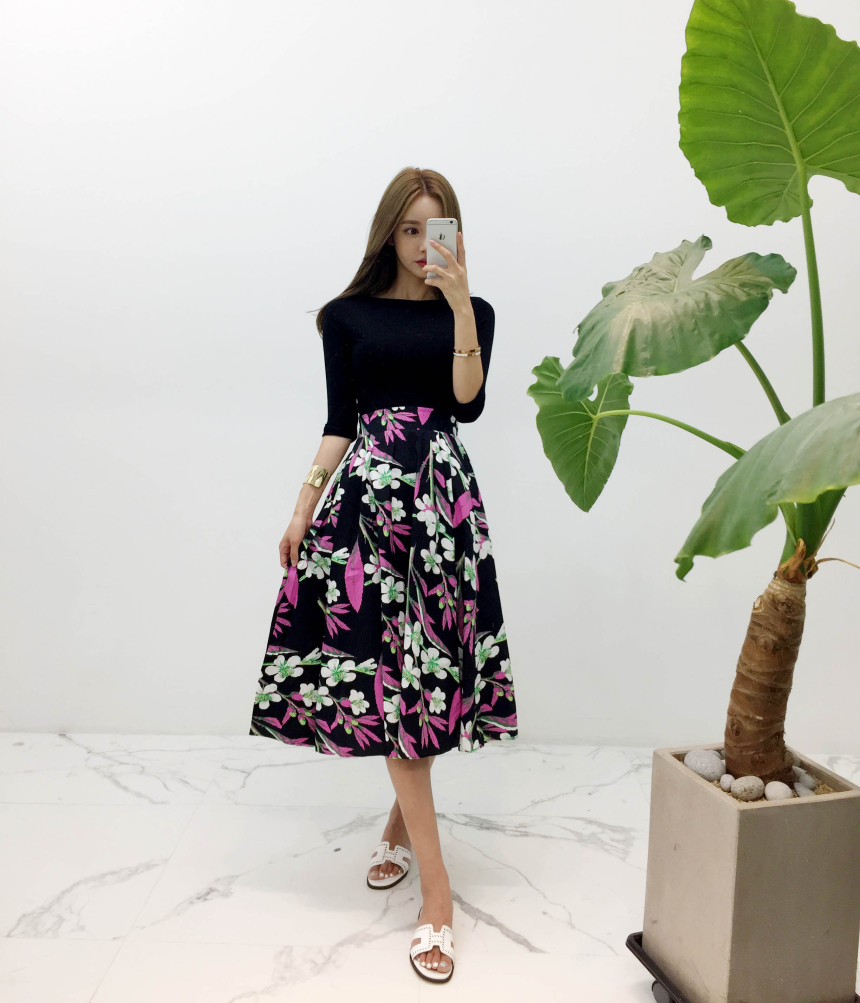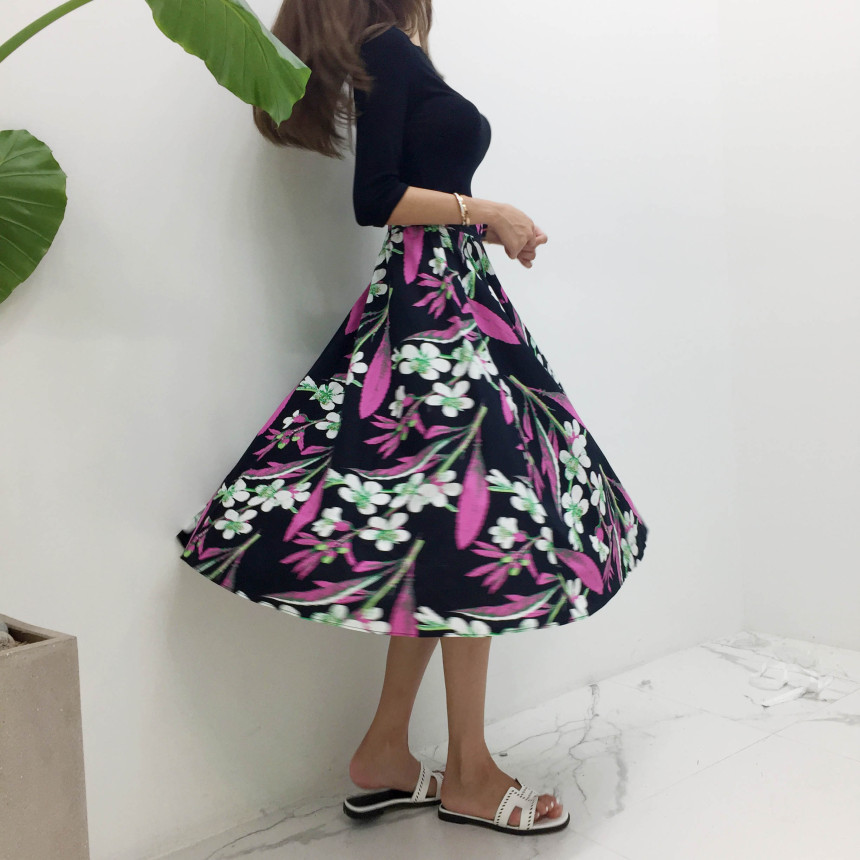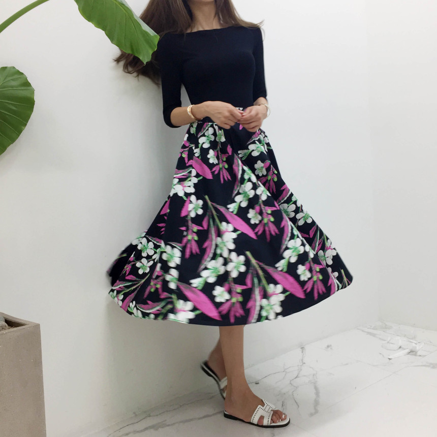 Black Pink Flower Flare Skirt Cody Outing Fine Jean Daily Item Sense Fever Fashion