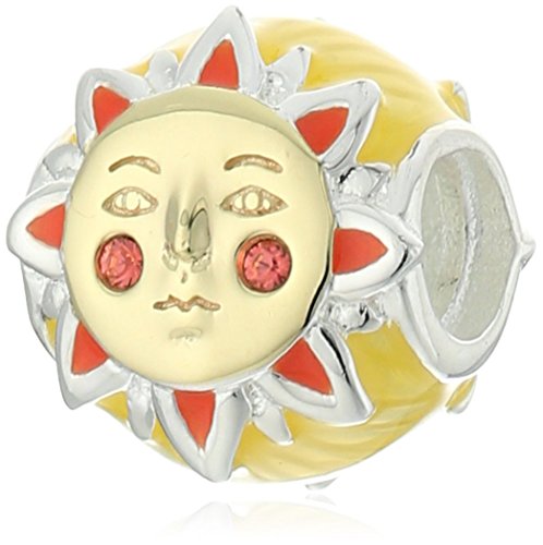 -. Feature : Soak up the sun with this richly detailed charm. This smiling sun radiates the joy of summer with gold electroplating, red and yellow enamel, and Padparadscha Swarovski Crystals. / Made in China / Sterling Silver & Swarovski Crystal / Imported