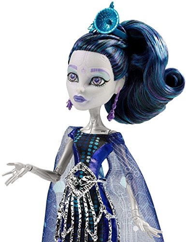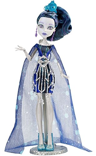 -. Feature : The Monster High ghouls are heading to Boo York City for the historic passing of the Crystal Comet and a hair-raising gala and monster skull-ebration / Their adventures introduce them to new beast friends carving their way in the big city: Luna Mothews, daughter of the Moth Man; Mouscedes King, daughter of the Rat King; and Elle Eedee, daughter of The Robots / Each wears her fiercest fashion and out-of-this-world accessories for the gala event that will skull-ebrate the comet's passing / Music-loving Elle Eedee doll sticks to clean lines in a futuristic dress with metallic belt/overskirt / A dramatic print cape, bright blue shoes and scary cool headpiece are shockingly cool