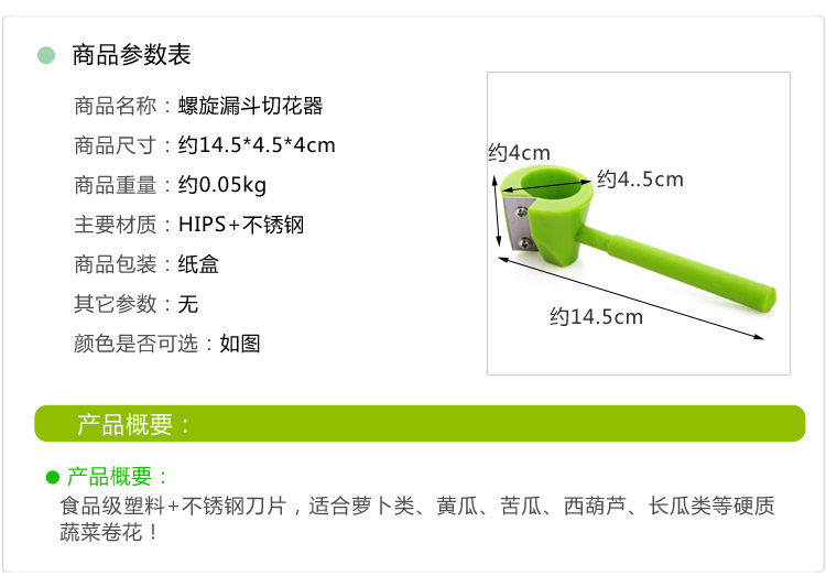 创意螺旋漏斗切花器蔬果雕花器卷花器黄瓜萝卜切花刀切片工具