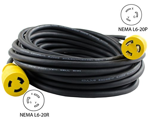 Conntek RUL620PR-025 25-Feet 12/3 20-Amp 250-volt L6-20 Anti-Weather, Oils, Acids and Chemicals Rubber Locking Extension Cord