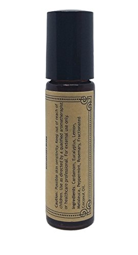 - 100% Pure Essential Oils of Cardamom, Eucalyptus, Lemon, Melaleuca, Peppermint, and Rosemary in a base of organic fractionated coconut oil