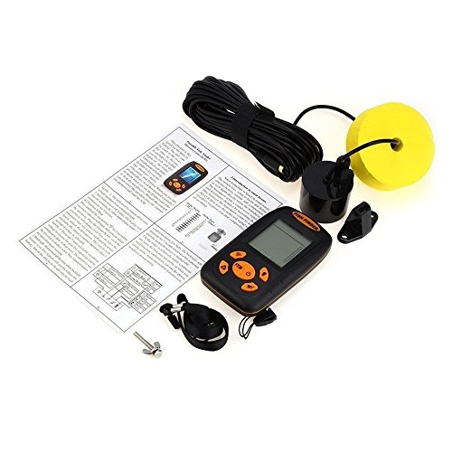 - DEEPER RANGE—The sonar sensor transducer can detect water depth from 0.7m to 100m(328ft) with 45 ° beam angle, can be applied to lake, river, sea and other fishing environments. Waterproof transmitter can be throw into water for use; however, the receiver with LCD screen is not water resistance, please avoid water spoilt.