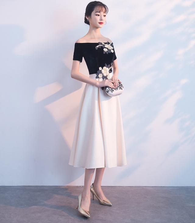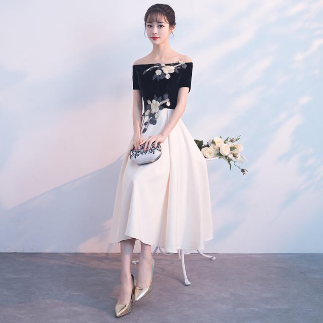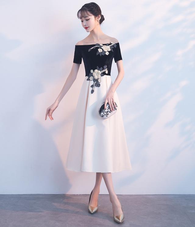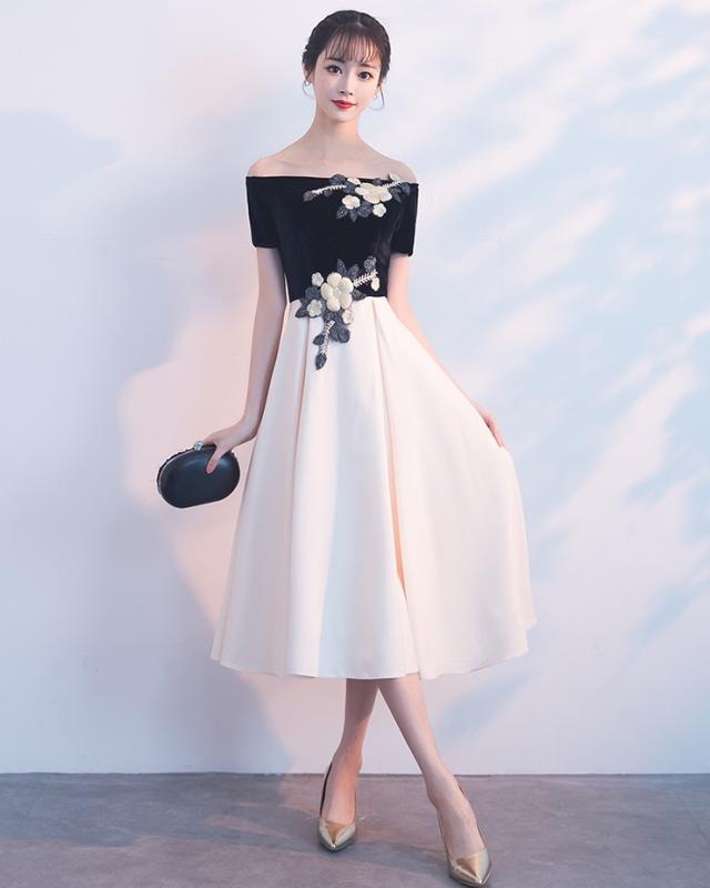 異素材ミックス オフショルダー バイカラー ミディアム ミモレ丈 ワンピース